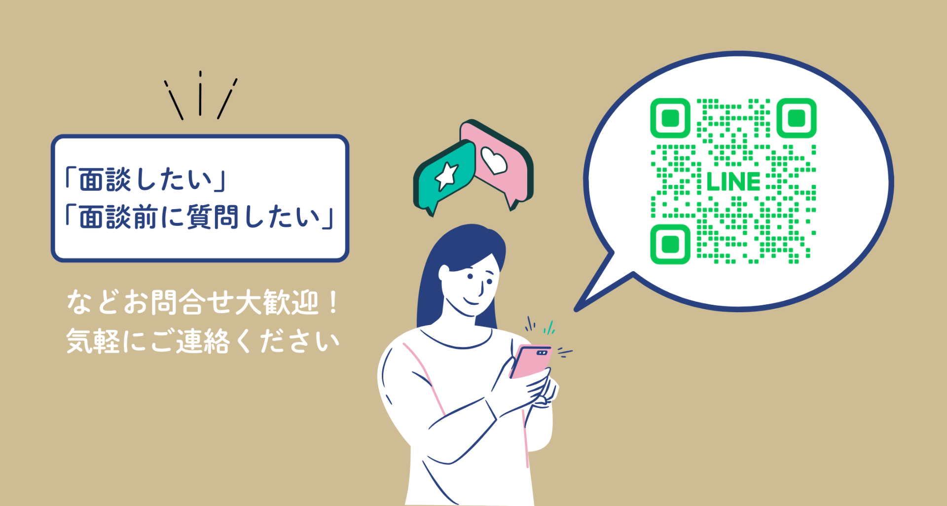 公式LINEの友達追加後「面談予約を希望」とメッセージをいただけたら、改めてアドバイザーより詳細をご案内します。