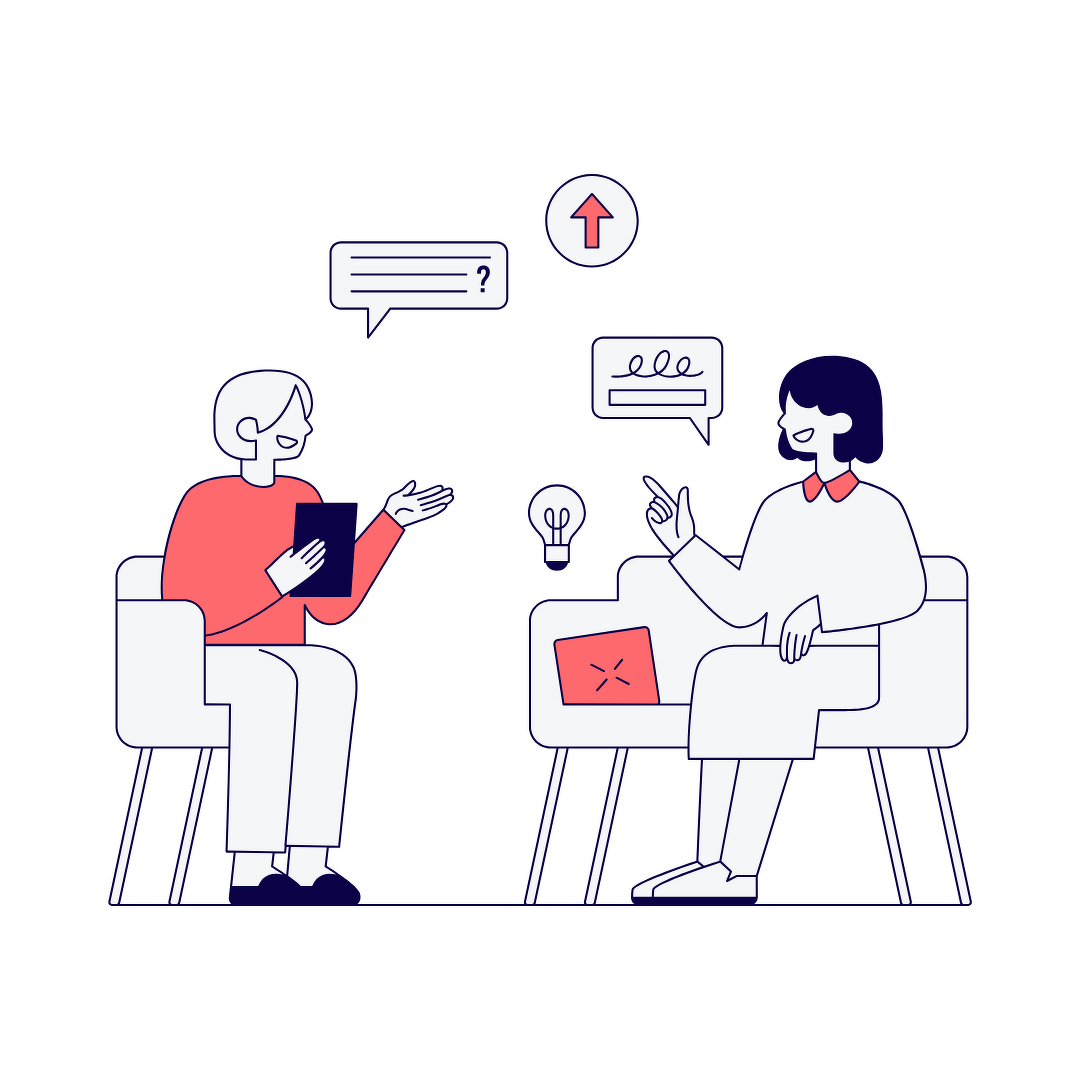 「面談」と堅苦しく表現してしまいましたが、ざっくばらんに話す時間です。今の職場に対する悩み、どんな業界・どんな職種を選べばいいのか分からない、そもそも転職すべきか悩んでいる……など一歩前に進む前のお話をしましょう。